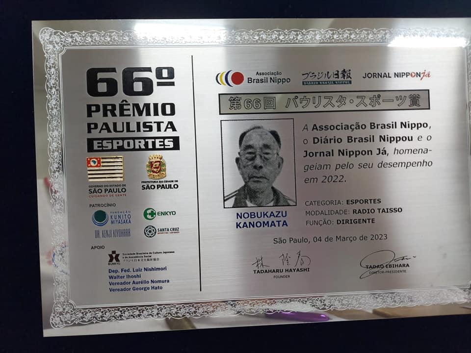 RÁDIO TAISSÔ, participando na 66ª Edição do Prêmio Paulista, realizado pela Associação Brasil Nippo, Diário Brasil Nippou e jornal Nippon Já, no dia 04/03/2023, às 9:00 hrs, na Sociedade Brasileira de Cultura Japonesa e de Assistência Social – Grande Auditório do Bunkyo. E este ano foi homenageado o Sr. Nobukazu Kanomata, presidente da Associação de Rádio Taissô Liberdade.
